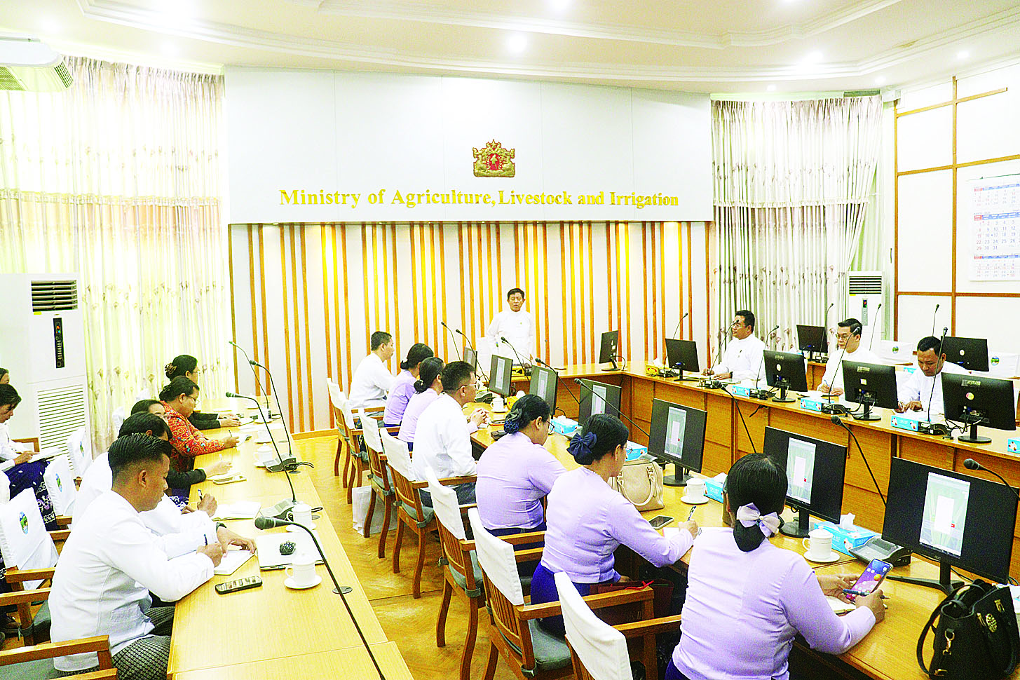 စိုက်ပျိုးရေး၊ မွေးမြူရေးနှင့် ဆည်မြောင်းဝန်ကြီးဌာန ဒုတိယဝန်ကြီး ဒေါက်တာတင်ထွဋ်သည် ရေဆင်းစိုက်ပျိုးရေးတက္ကသိုလ်၊ စိုက်ပျိုးရေးသုတေသနဦးစီးဌာန၊ အမျိုးသားဉာဏ်ရည်တု နည်းပညာဖွံ့ဖြိုးတိုးတက်ရေးဦးစီးဌာနမှ ပါမောက္ခများ၊ သုတေသနပညာရှင်များ၊ တာဝန်ရှိသူများအား ယနေ့နံနက်ပိုင်းက နေပြည်တော် ရုံးအမှတ် (၁၅) အစည်းအဝေးခန်းမ၌ တွေ့ဆုံဆွေးနွေးသည်။