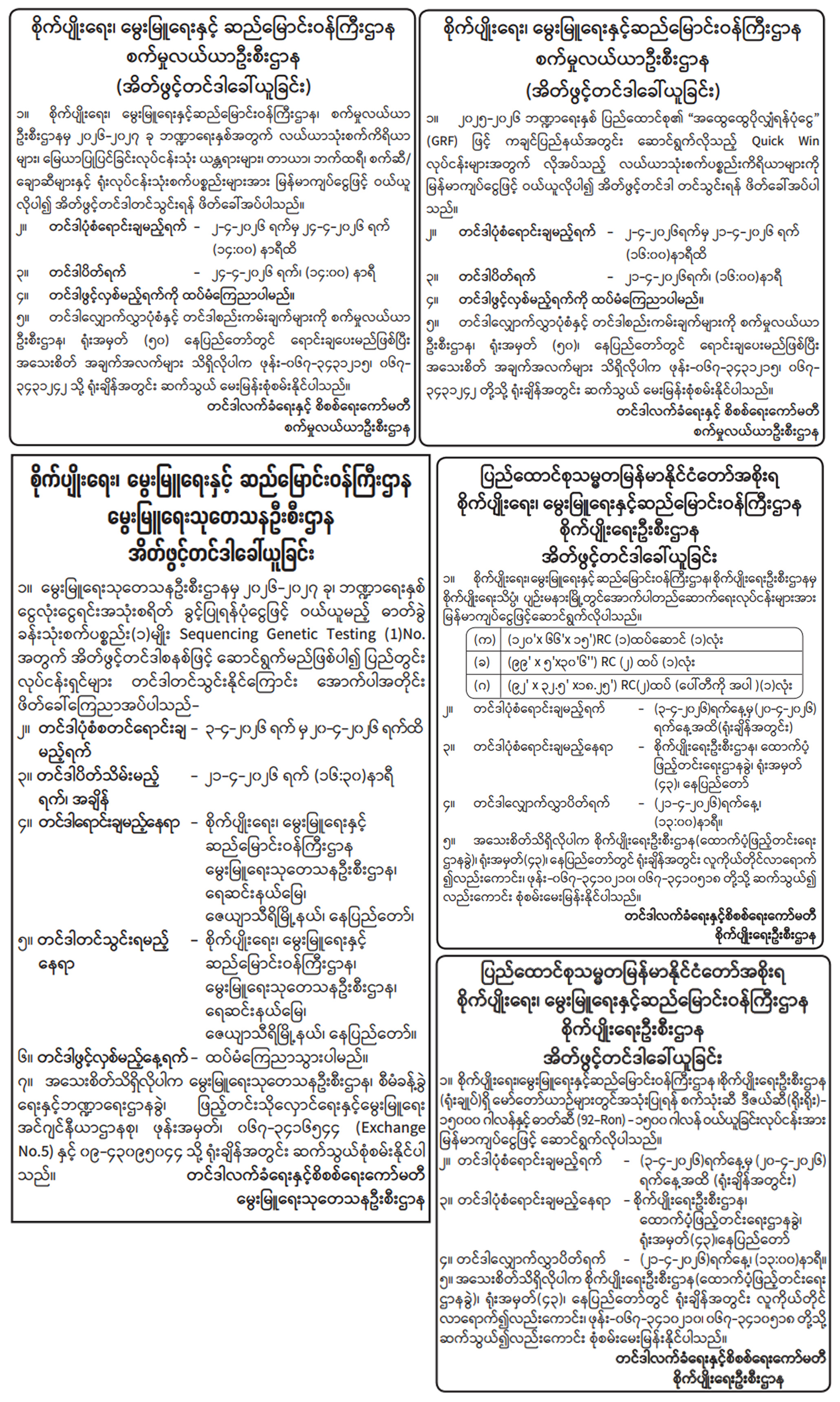 ၂.၄.၂၀၂၆ ရက်နေ့ထုတ်၊ မြန်မာ့အလင်းသတင်းစာနှင့် ကြေးမုံသတင်းစာများတွင် ပါရှိသည့် အိတ်ဖွင့်တင်ဒါများအား စုစည်းဖော်ပြအပ်ပါသည်။