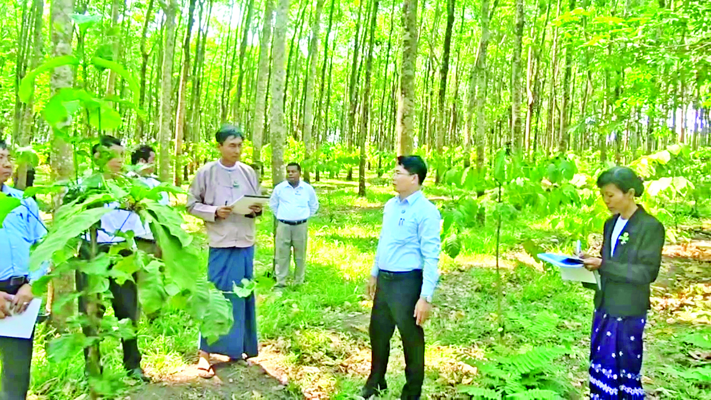 ထို့နောက် ပြည်ထောင်စုဝန်ကြီးသည် နှစ်ရှည်ပင်များသုတေသနနှင့် နည်းပညာဖွံ့ဖြိုးရေးခြံ (မုဒုံခြံ) ကို ကြည့်ရှုစစ်ဆေးပြီး တာဝန်ရှိသူများအား မြေယာအသုံးချမှုနှင့်ပတ်သက်၍ တည်ဆဲဥပဒေ စည်းမျဉ်းစည်းကမ်းနှင့်အညီ ဖြစ်စေရေး ဂရုပြုဆောင်ရွက်ရန်၊ ရော်ဘာအထွက်နှင့် အရည် အသွေး မြင့်မားရေးအတွက် လိုအပ်သော စီမံဆောင်ရွက်မှုများ ကြပ်မတ်ဆောင်ရွက်ရန်၊ မိမိတို့ ဌာနခြံမှ ပျိုးပင်ဖြန့်ဖြူးပေးခြင်းနှင့်အတူ ရော်ဘာအထွက်နှုန်းနှင့် အရည်အသွေး ကောင်းမွန်စေရေး အတွက် လိုက်နာဆောင်ရွက်ရမည့် နည်းပညာဆိုင်ရာထောက်ခံအကြံပြုချက်များ တစ်ပါတည်း နည်းပညာပေး ဆောင်ရွက်ပေးရန်၊ စိုက်ပျိုးလုပ်ကိုင်သူအတွက် အကျိုးဖြစ်ထွန်းနိုင်စေရေးနှင့် ထုတ်လုပ်တင်ပို့မှု ကွင်းဆက် တစ်လျှောက် တရားဝင်ဆောင်ရွက်နိုင်ရေး အသိပညာပေးဆောင်ရွက် ရန်ဆွေးနွေးမှာကြားကာ ရော်ဘာပင်များအကြားတွင် ကိုကိုးနှင့် ကော်ဖီသီးနှံများ စိုက်ပျိုး အောင်မြင်နေမှုကို ကွင်းဆင်းကြည့်ရှုအားပေးသည်။