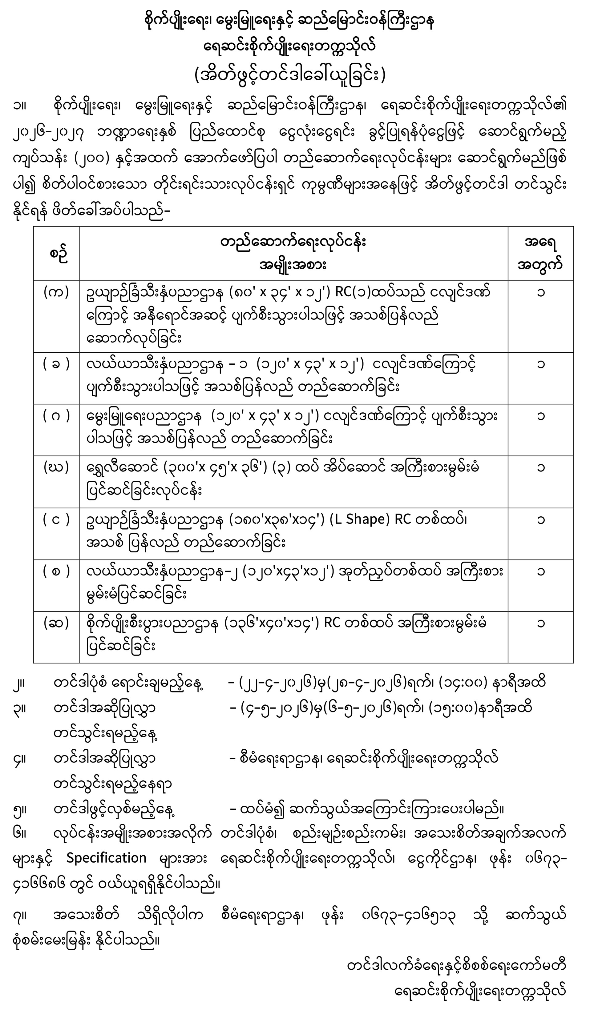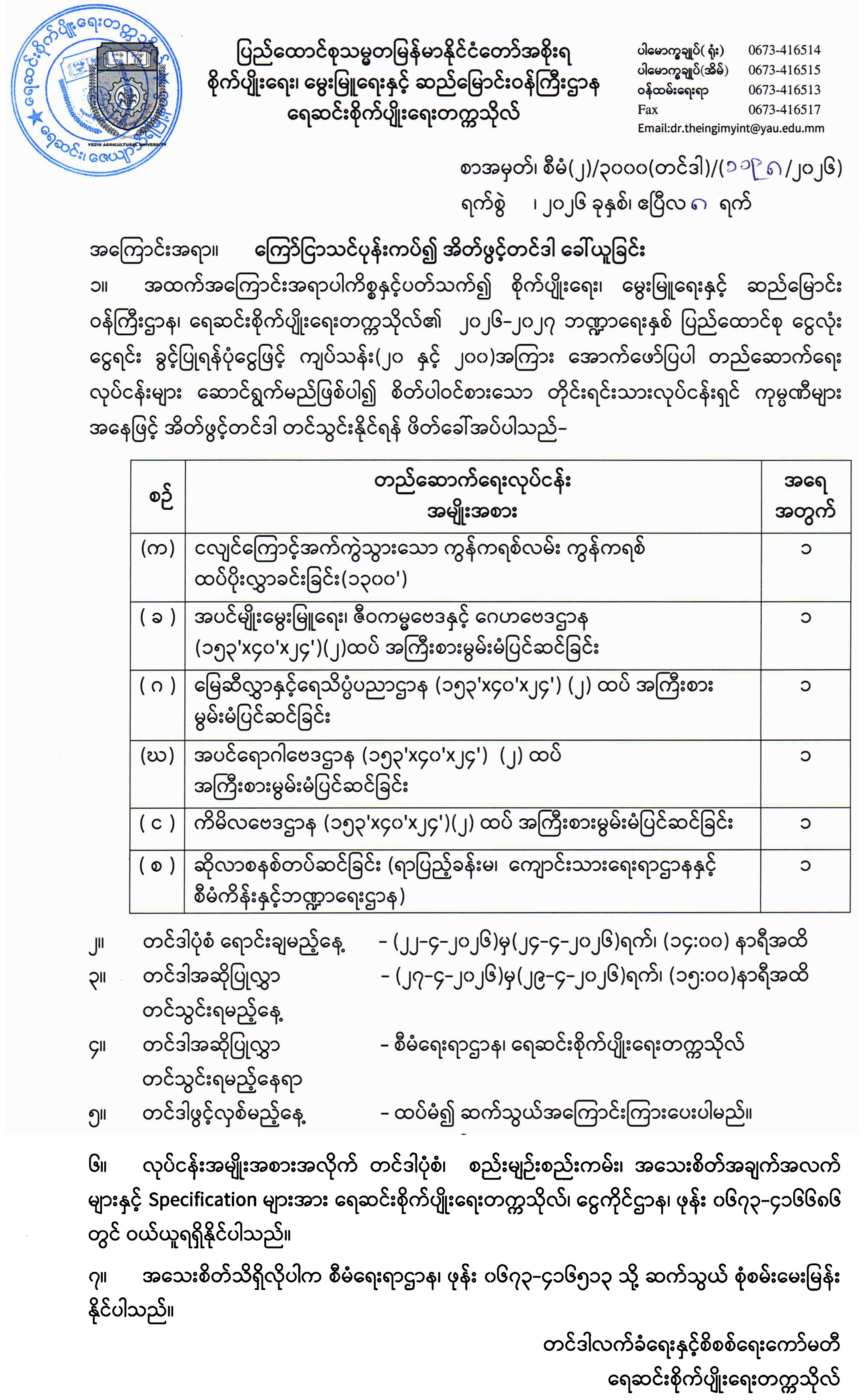 ရေဆင်းစိုက်ပျိုးရေးတက္ကသိုလ်မှ အိတ်ဖွင့်တင်ဒါခေါ်ယူခြင်း